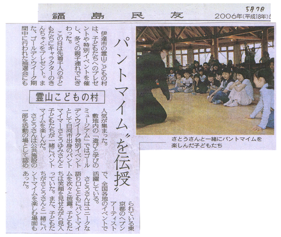 2016年3月11日 EUジャパンフェスタ支援事業「Fukushima Tree」をポーランドで上演。「ワルシャワ国際マイムフェスティバル」ほか、ヨーロッパ各地マイムフェスに参加。人気歌手「ヨルシカ」のMVではパペット奏者を務めた(撮影地スウェーデン)。https://youtu.be/DlyG6MAKUOA?list=PLsupokMUdbWUlBLlPNHrQrwGxjI1MbWtt